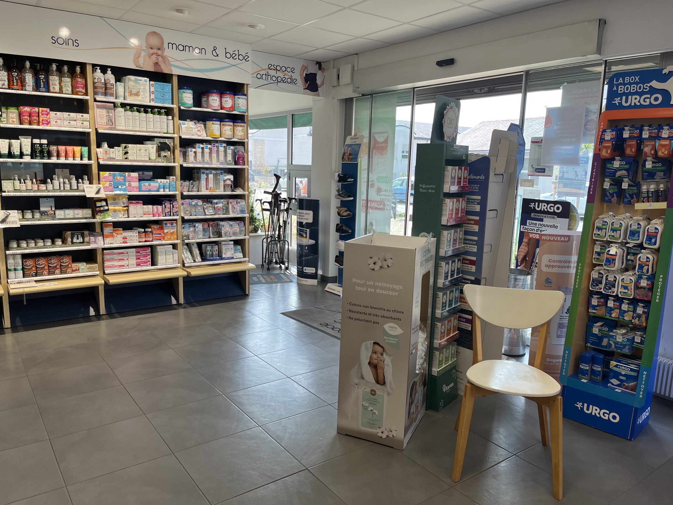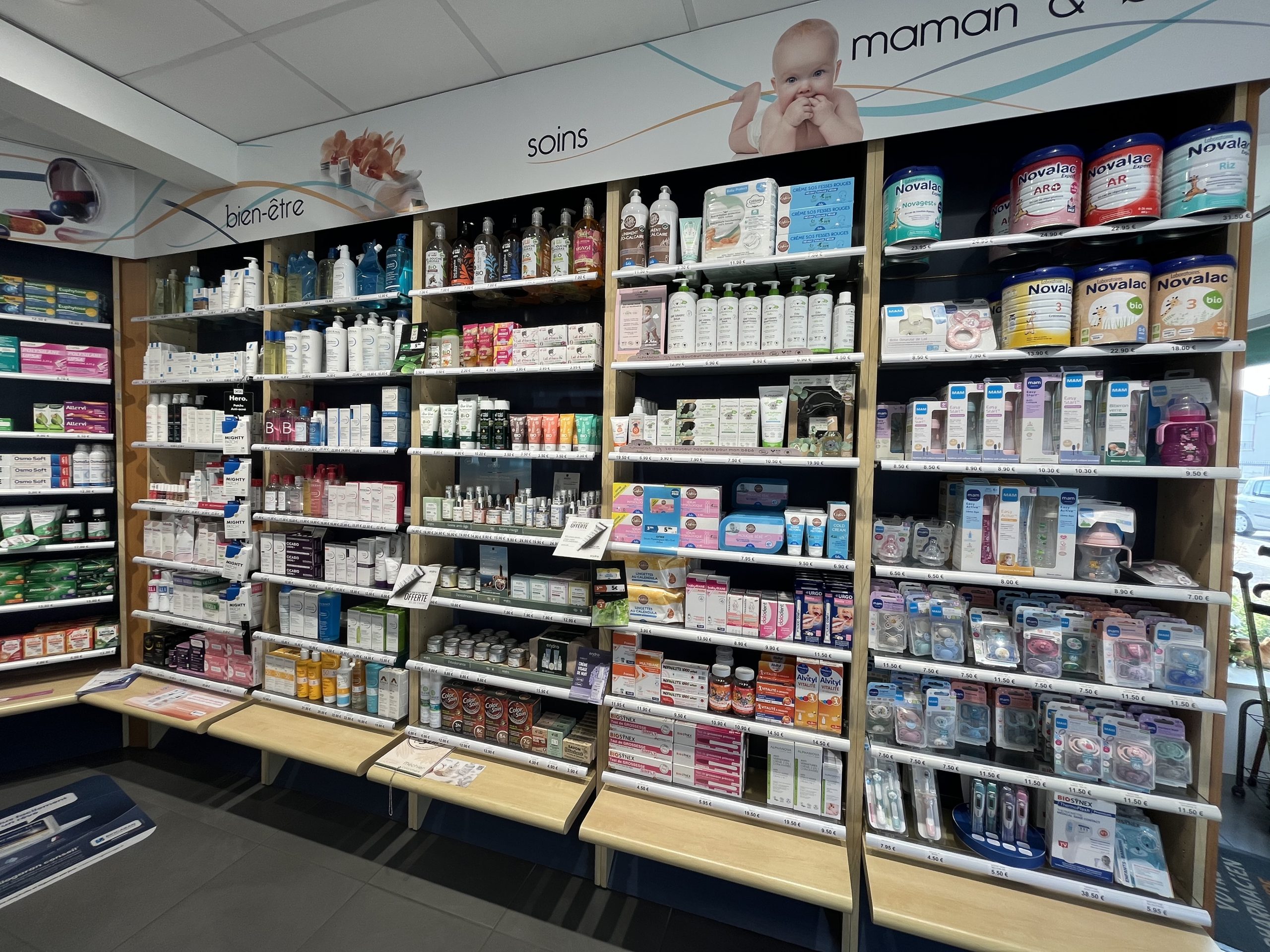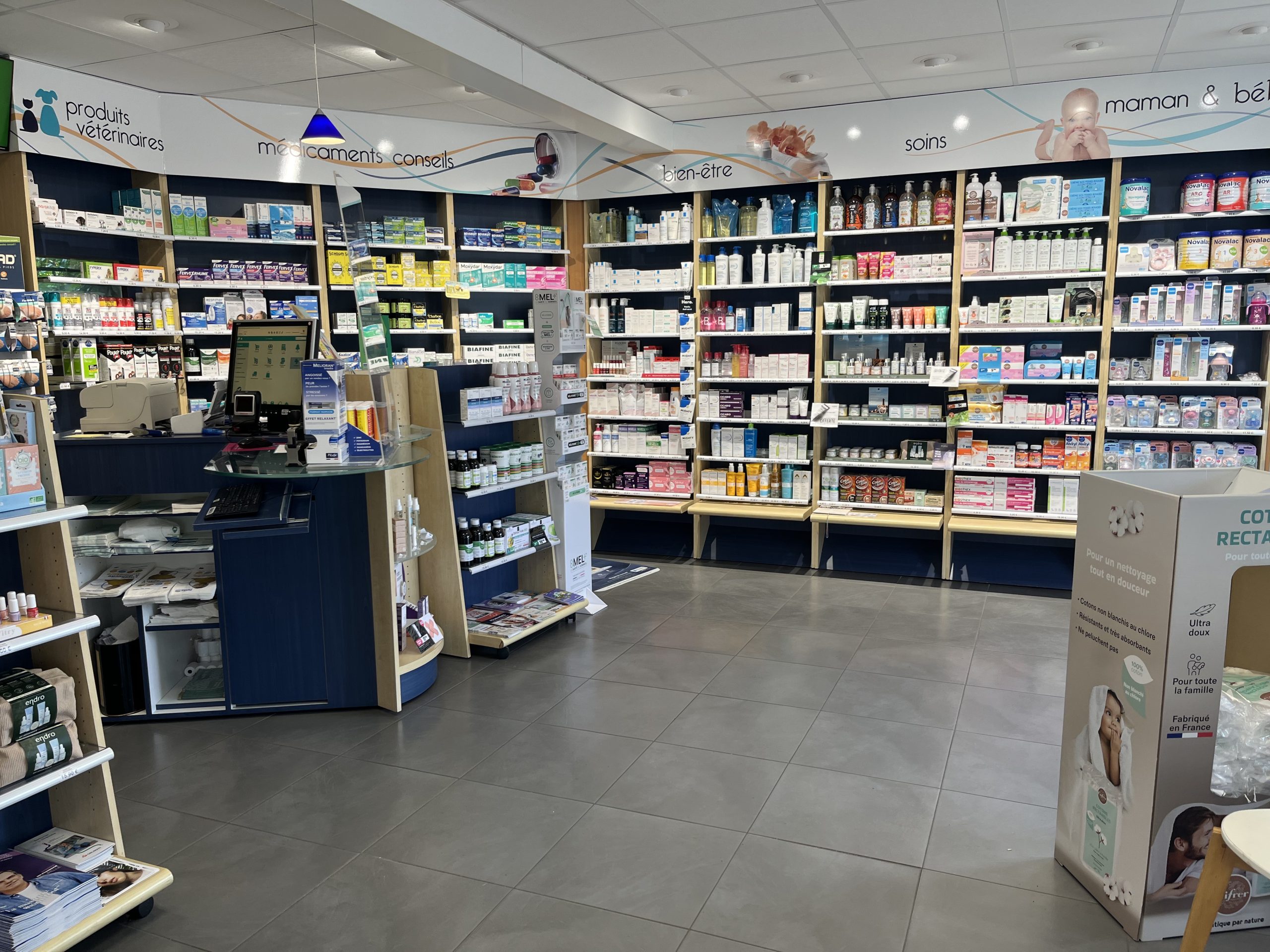Notre officine vend de nombreux produits : compléments alimentaires, huiles essentielles, matériel d’orthopédie (colliers cervicaux, genouillères, bas de contention), produits vétérinaires ou encore tensiomètres.